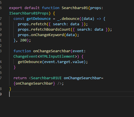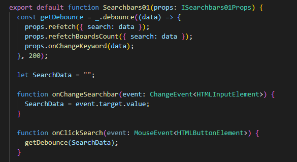 onClickSearch가 실행될때 debounce가 SearchData 값을 받아 실행되게 나눠주었다.