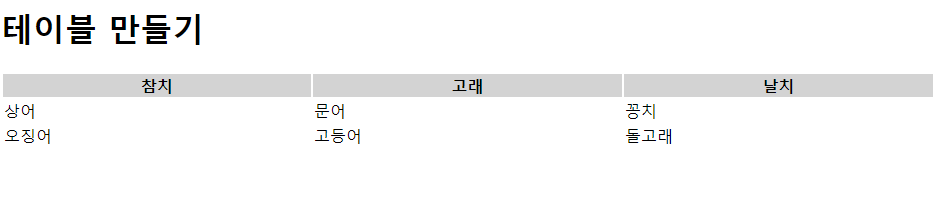 <h1>일반적인 테이블 만들기</h1>