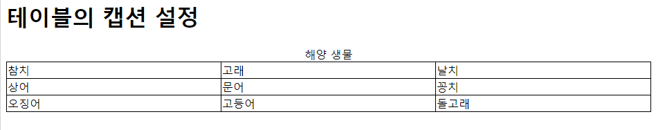 <h1>테이블의 캡션 설정</h1>